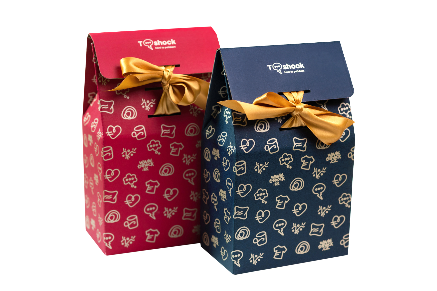 Hledáš neobyčejné a praktické balení dárků? Vyřeš boj s balícím papírem a zabal více dárků do jedné dárkové krabičky, kterou pak jen zavřeš a zavážeš zlatou saténovou stuhou. Každou dárkovou tašku balíme vždy ještě do větší expediční krabice, takže ji nic nepoškodí. Do krabičky se vejdou různé kombinace dárků s vlastním potiskem jako například tričko, plecháček, přívěsek nebo funkční tričko, láhev na pití a nákrčník. Tvoř a vybírej z našeho e-shopu, fantazii se meze nekladou!